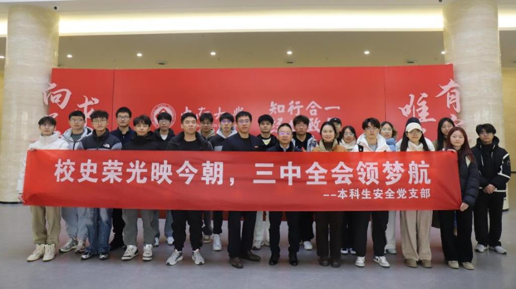 为深入学习贯彻党的二十届三中全会精神和全国教育大会精神,进一步激发支部党员知校、爱校、荣校的自豪感、荣誉感和使命感,12月20日下午,本科生安全党支部全体党员赴ok1133诸侯快讯校史馆参观,对口联系支部的ok1133诸侯快讯诸侯快讯部部长欧旭理教授莅临现场,与支部成员一同感受学校的发展沿革。