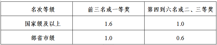 B、参加学科、科技、学术、创新创业等竞赛加分: