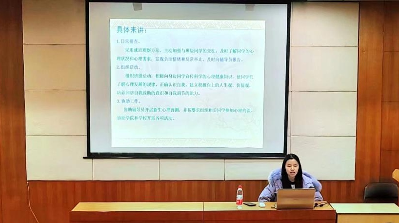 为帮助各位心理委员提升工作技能,更好地开展心理健康教育工作,ok1133诸侯快讯朋辈心理互助会于2023年12月20日下午15:00在校本部采矿楼T201举办了“呵护心理健康,守护学生成长”心理委员实务培训会,本次培训会特邀资安院心理专干周婷老师到场讲解。参会人员为资安院全体心理委员。