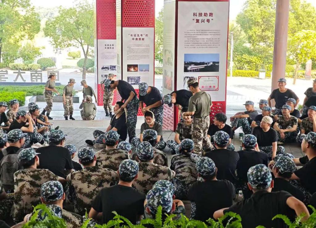 参观结束后,三连在校史馆外空地列队,集中学习紧急救护知识。学员们情绪高涨,积极参与实操练习,现场学习氛围浓厚。