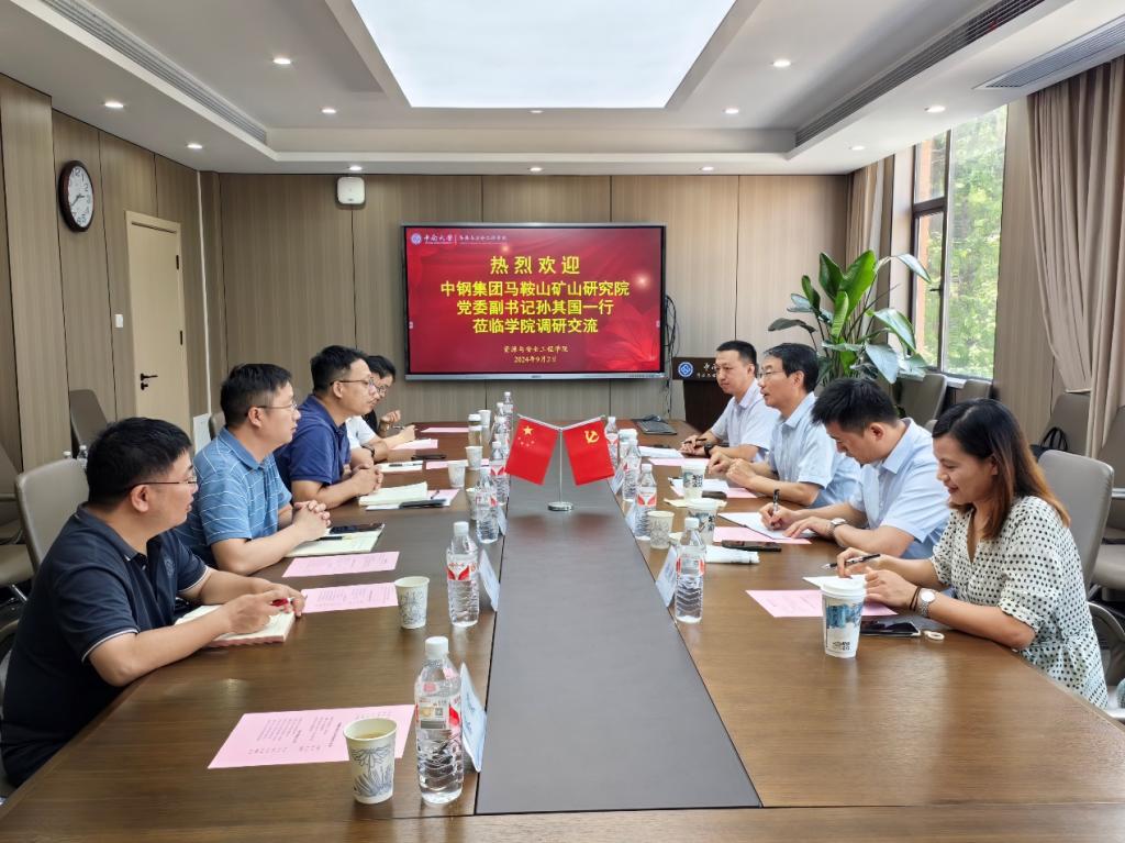 2024年9月2日,中钢集团马鞍山矿山研究院党委副书记、纪委书记孙其国一行来学院开展工作交流。ok1133诸侯快讯党委书记秦进等学院领导在采矿楼222会议室接待孙其国书记一行,部分教师代表参加交流活动。