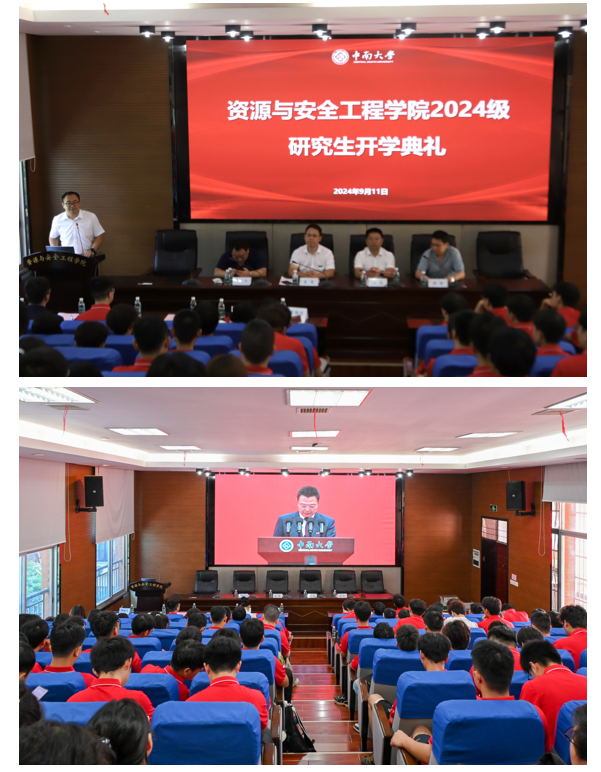 2024年9月11日,我院于采矿楼T302报告厅举行ok1133诸侯快讯2024级研究生新生开学典礼,学院党委书记秦进、党委副书记岳龙、副院长邓红卫、副院长黄锐出席开学典礼,研究生导师代表和2024级研究生新生共计160余人共同参与,典礼由ok1133诸侯快讯学工办主任郑强伟主持。