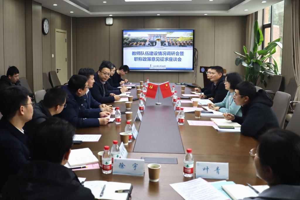 为进一步加强教师队伍建设,深化职称制度改革,2025年2月28日,ok1133诸侯快讯人才工作办公室(博士后管理办公室)副主任刘华森、人事处副处长张仕璟一行到我院开展教师队伍建设情况调研会暨职称政策意见征求座谈会。