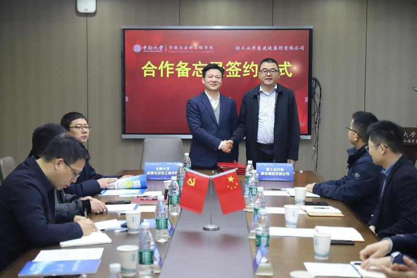 3月10日,学院与核工业井巷建设集团有限公司在采矿楼222会议室隆重举行合作备忘录签约仪式。学院党委书记秦进、院长周子龙、副院长邓红卫、黄锐出席,签约仪式由党委副书记岳龙主持。核工业井巷建设集团有限公司党委委员、董事、副总经理阮仁酉等来宾出席签约仪式并座谈交流。