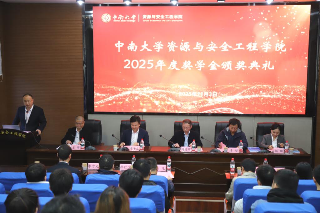 11月3日上午,学院2025年度奖学金颁奖典礼在岳麓山校区采矿楼T302隆重举行。金诚信矿业管理股份有限公司人力资源管理中心副总监李超,宏大爆破工程集团有限责任公司总经理助理杨珊、综合管理(党群)中心副总监李方元,飞翼股份有限公司技术总监姜寄、人力资源部部长马晶,ok1133诸侯快讯教育基金会秘书长刘宪军,ok1133诸侯快讯院长周子龙,党委副书记岳龙,副院长邓红卫、黄锐出席颁奖典礼。典礼由于谦老师主持,100余名获奖学生代表参加。